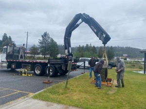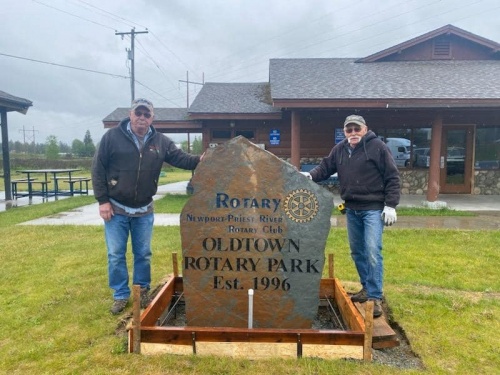 Installing the Rotary Rock display outside the Oldtown Rotary Park Building